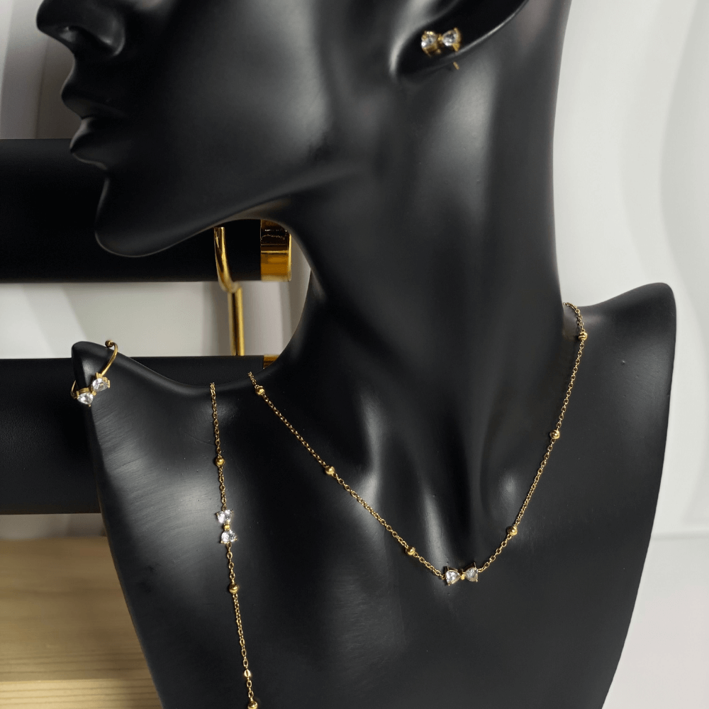 Stoned bow inspired earrings, necklace, ring and bracelet set.