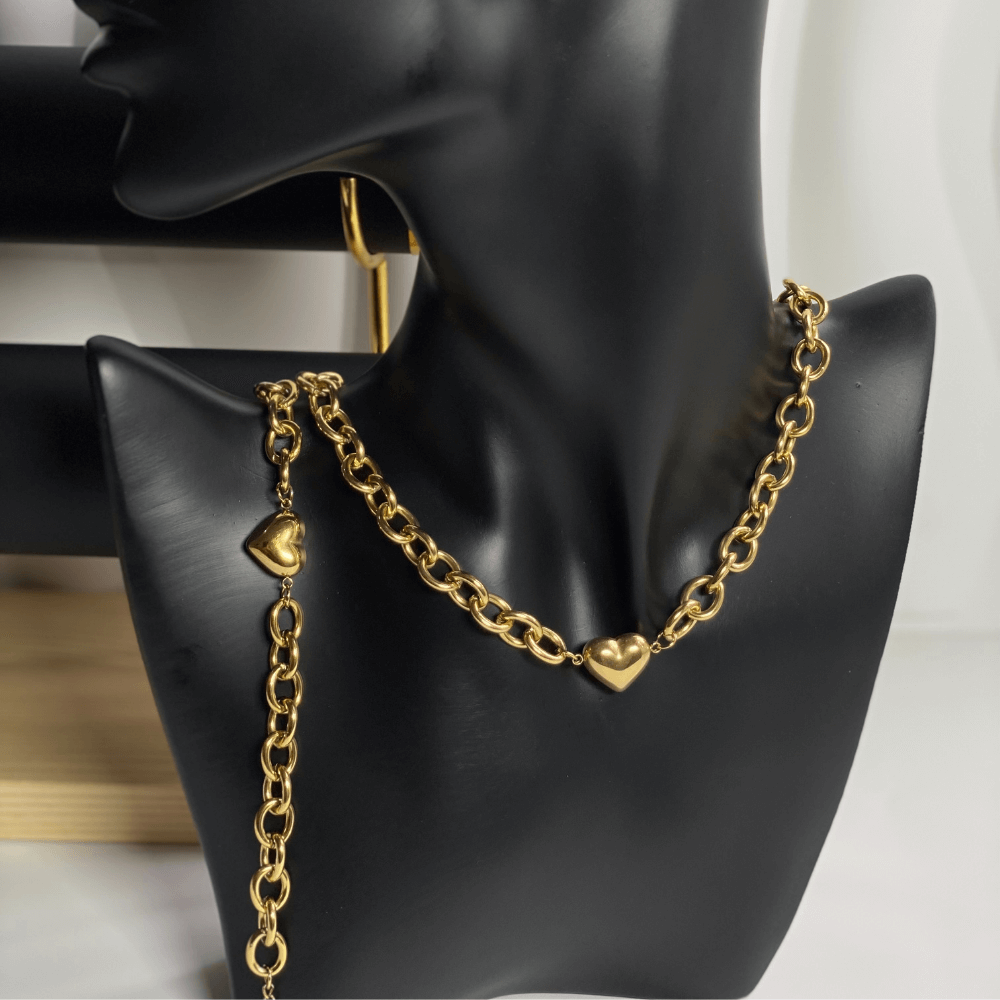 Statement chunky chain and love inspired necklace and bracelet set.