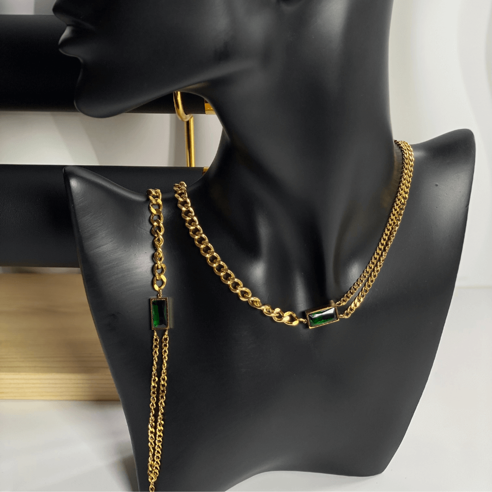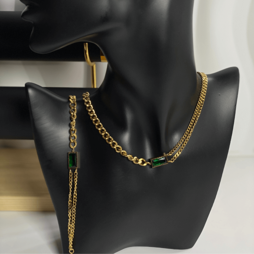 Green stone rectangle pendant statement inspired necklace and bracelet set.