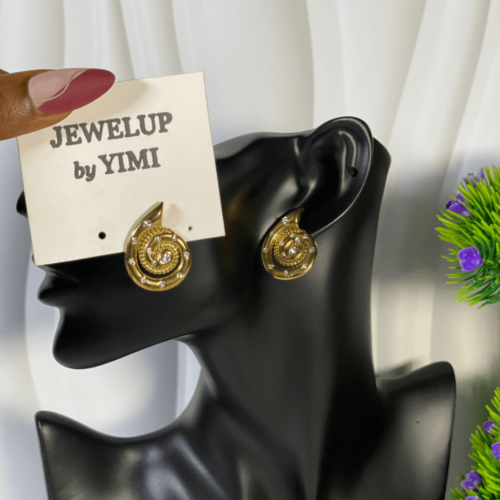 Stoned Round spiral inspired steel earrings.
