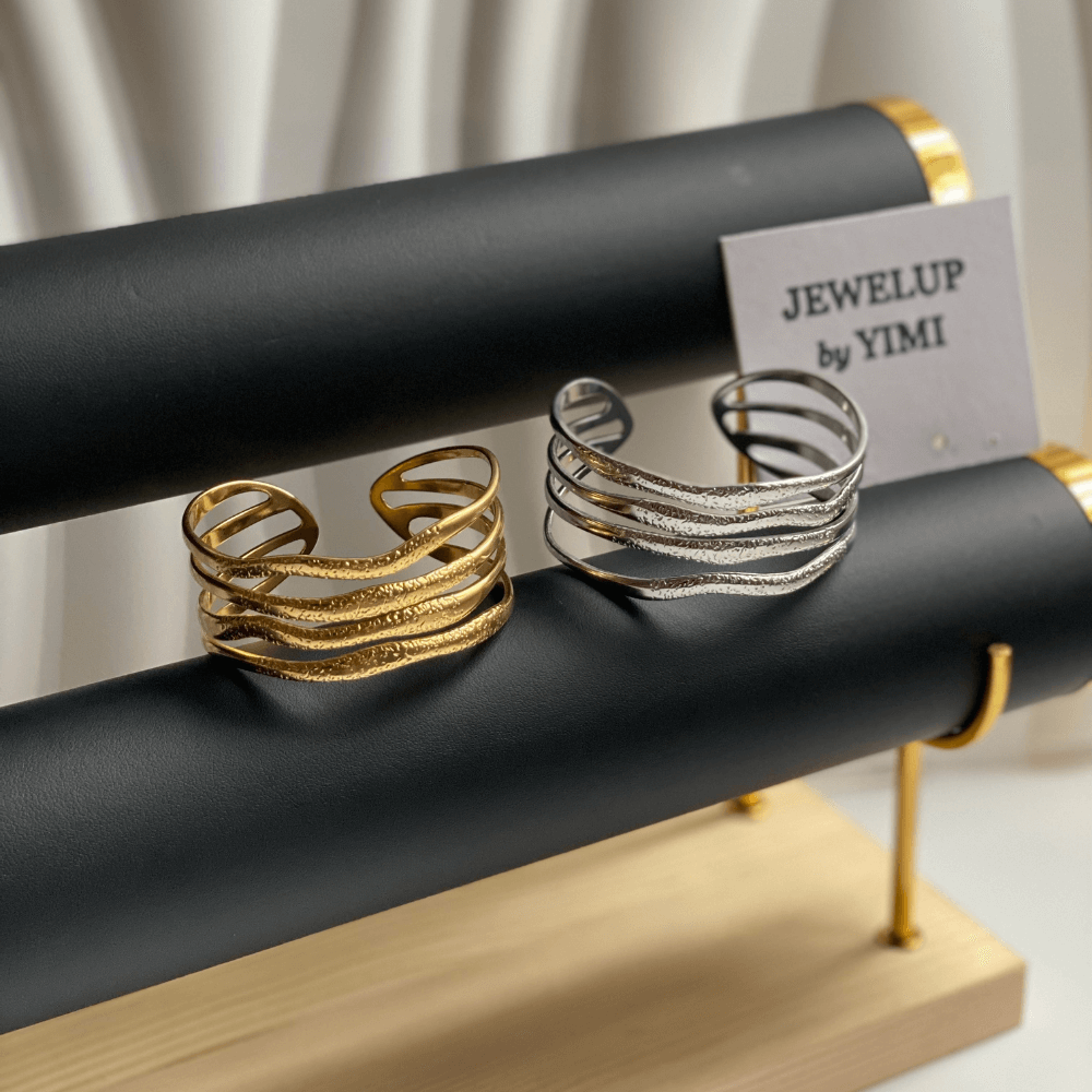 Matte multi lined inspired statement cuff bracelet.